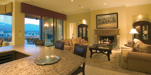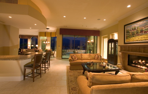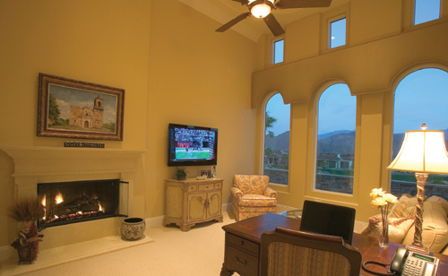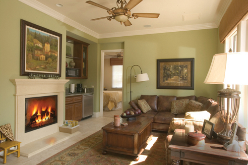 In the main home the dining room provides seating for ten and the Family Room features a Tuscan stone fireplace and a 60″ Samsung HDTV with theatre quality 5.1 surround sound system.