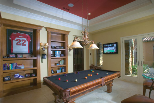 This home lends itself to quiet relaxation or elegant entertaining. It has a gourmet kitchen, wet bar, formal dining room, separate living and family rooms, guest bathroom and even a billiard room for that after dinner cognac.